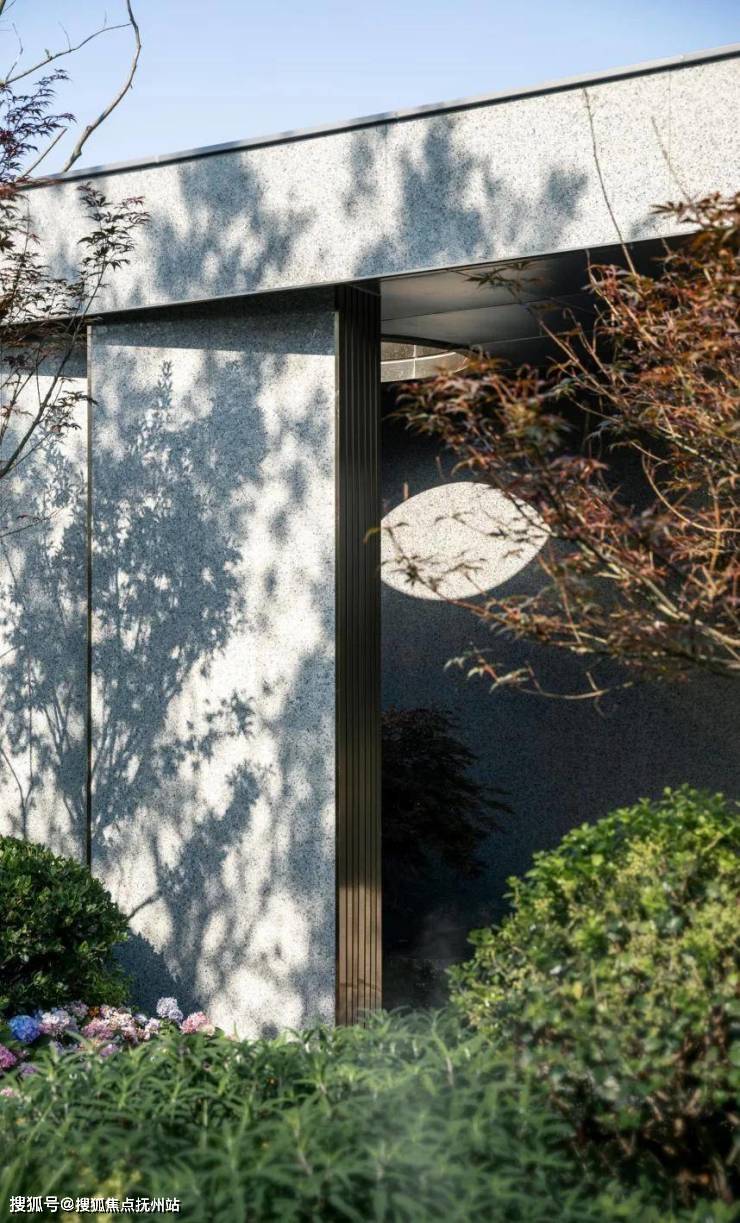 设计师最终选择以营造“最佳初印象”及“沉浸式体验感”为主,在市政界面,将门头和周围挡墙连成一片作为示范区完整入口,打造迎宾礼序界面,纯粹凝练。景观空间组织上,以迂回手法,拉长参观路线,将汀步与景观花境紧密结合,相映成趣,于建筑语言中提炼景观元素,在永恒与变化中,材料与视觉间,探求源著视界最景阔幽深的表达。
