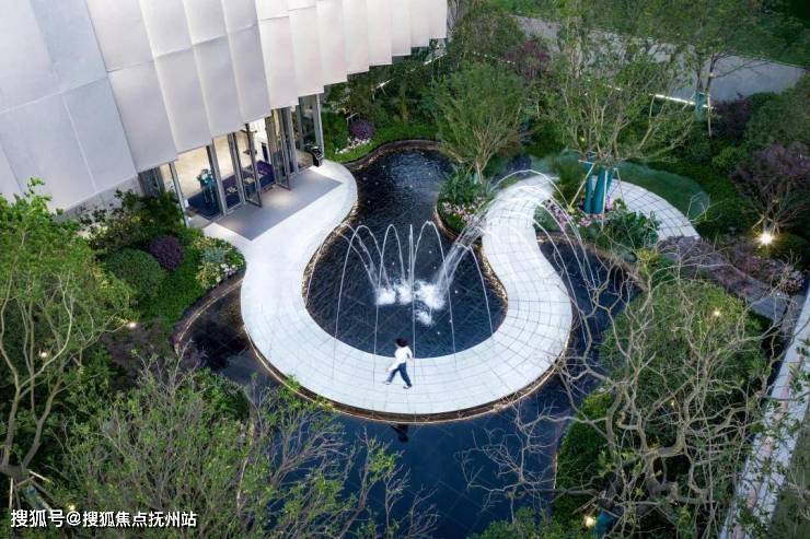 步入这方静谧流动的庭院,能感受到夏溪潺潺,百折迂回的“探幽”乐趣,空间中抓取夏溪河、钱资湖的光影形态,幽潭意象,形成联动的意境空间,布局运用在景观打造中,以曲线美学艺术诠释场地文化精神,灵动水景经由石阶周折引入,曲径纵深,漫步此间,观境由心,归逸溪居,呈现一场“溪绕礼遇,一浸碧空,自然天成”的流动盛宴。