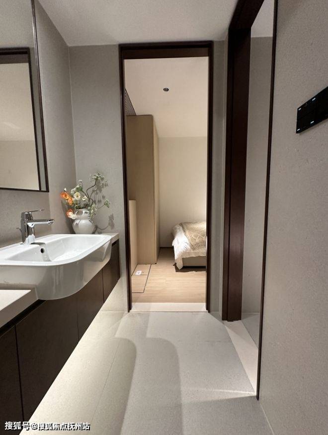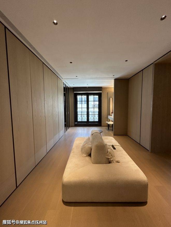 靠户型东侧,样板间设计了一个独立衣帽间和主卧套房的第二个卫浴空间。