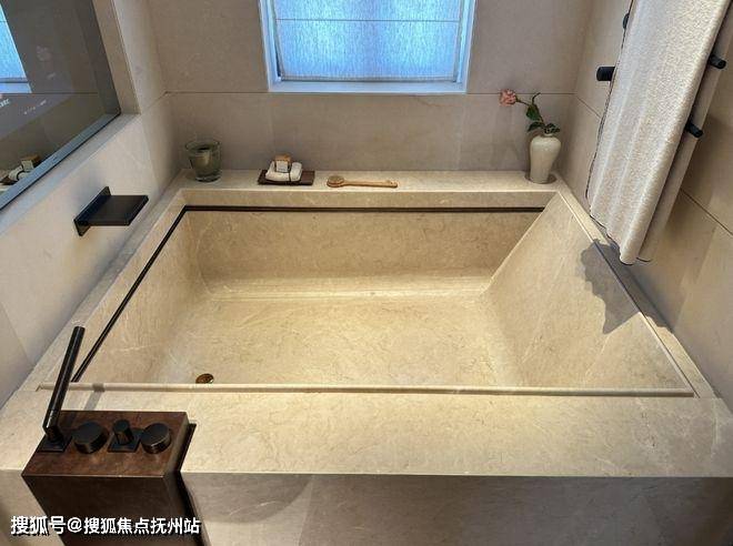 而样板间里这第二个卫浴空间,更接近于享受级。嵌入式浴缸,设计了魔镜系统,可以供业主泡澡时观影娱乐;除此之外,这个卫生间也有独立的淋浴房,并设计有桑拿房。