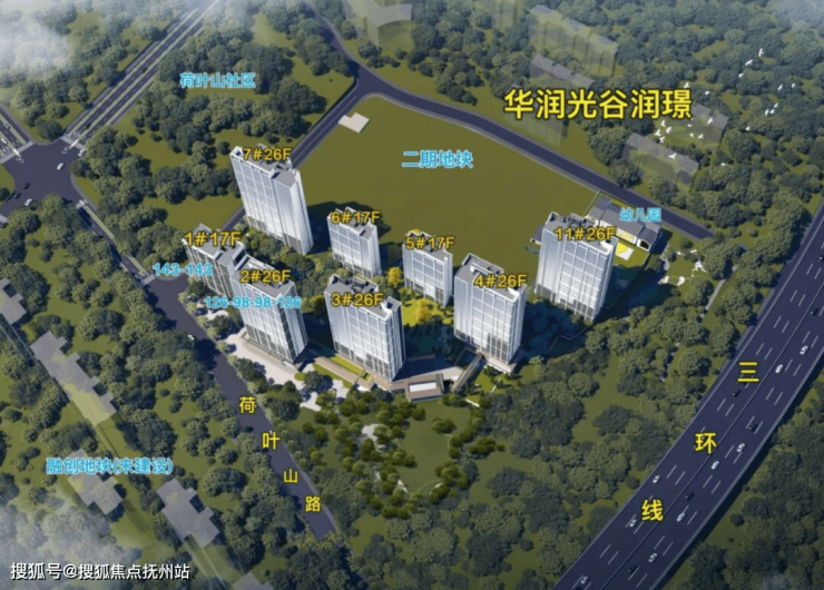 光谷润璟不只靠旁边的荷叶山公园,项目本身配有独立景观公园,南侧还有规划中的润璟公园,同时紧邻三环线桥下90万方整体绿化带计划的首发示范段。