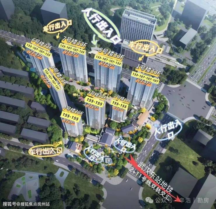 2/11号线双轨交汇,约600m直达武汉东站地铁站;