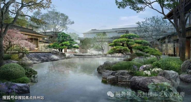 虎丘江南里,巧妙融合江南文化、虎丘文化、湿地自然,以极致的苏州园林元素植入其中,作为119位尊贵业主的私享花苑;漫步园中,山石亭阁、茂林修竹、叠水流瀑,试图在高密度城市之中,让江南诗意在园区复刻重现。