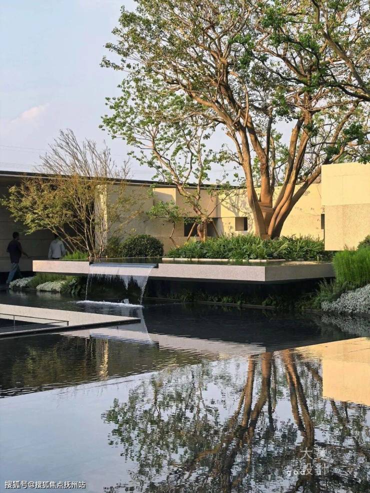 七株精挑细选的红果冬青,生长在层叠的悬浮水院之上。水底的幻彩蓝奢石倒映着天光云影,将杭州的立体山水浓缩进整片园林之中。