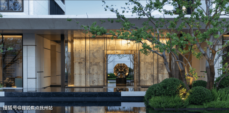 示范区以“立体山水,大隐于市”为理念,将江南园林的造境哲学转化为现代建筑语言。通过多重庭院、路径转折与虚实界面,在有限的地块中实现步移景异、小中见大的沉浸式游观体验。选用沉香米黄砂岩与古铜材质,低调雅奢,历久弥新。