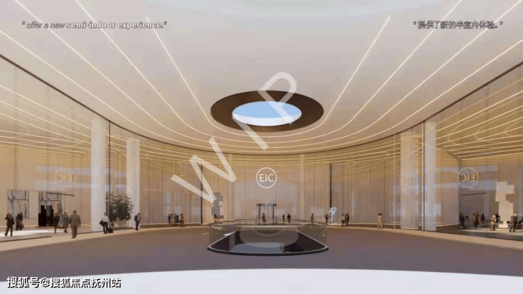 殿堂级迎宾落客区,让车辆可直接开入建筑内,未来感十足。如果你为EFC近1000方的超级落客区和大雨棚感到震撼,那么今后EIC“梦露裙摆式”流线一体悬挑技术大雨棚会继续挑战你的想象力,光这个雨棚下就可以停下18辆车,堪比小型停车场。