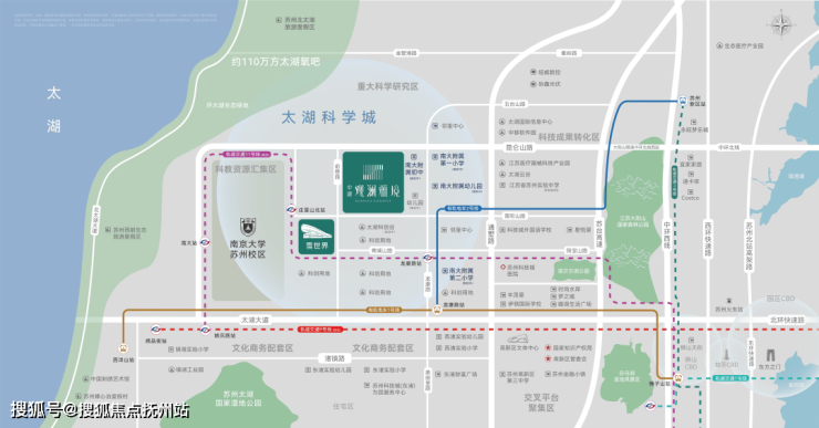 【近南大CBD+CLD正核】本案位于太湖科学城10km2核心区,中央居住区+中央商务区 ,约1KM最近南大。