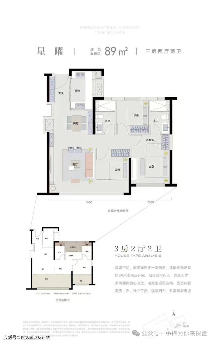 目前已公开89m²户型图,得房率95%,部分户型最高得房率可达108%,毛坯交付。