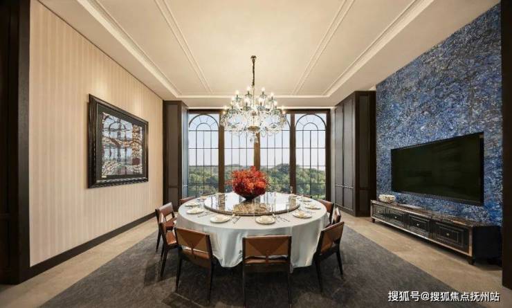 另外,项目在材质上大量运用奢石。比如项目的门楼采用了上海海鸥丽晶酒店同款巴西金石材。接待大厅采用进口奢石巴西乌金石打造的大理石柱。接待台则采用玻利维亚蓝,这是世界上储存量极少的石材之一,被称为奢石中的劳斯莱斯。随处可见Old money奢华风格。