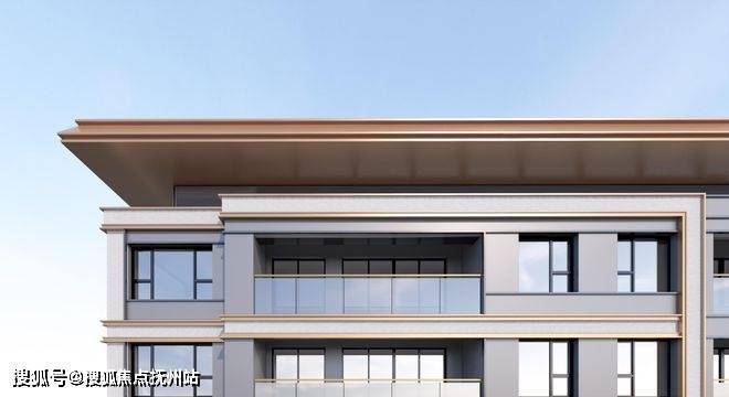 ◆现代立面:以大面积玻璃、香槟色装饰线条打造深灰色质感外立面,构建匠心美学范本。
