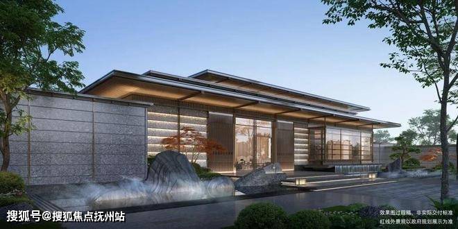◆二进|登门望府 :以画景还原的方式,打造飘逸巍峨的“三重檐”,结合七开间秩序的建筑手法,还原传统中式大门的礼序考究。