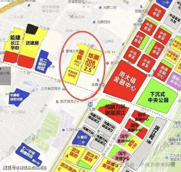 武汉天宸一期P(2024)208号地块,位于江岸区二七北路以南,解放大道以西,2024年12月26日,央企华润置地(武汉)有限公司以底价70000万元获得该地块,成交楼面价10218.99元/㎡。这个就是武汉天宸一期。一期旁边的P(2023)115号地块在2023年12月,武汉地铁集团就以7.8亿元底价拿下了相邻的P(2023)115号地块,楼面价14003.59元/㎡ 。地块旁边P(2025)090号地块又在今年9月25日,武汉地铁集团全资子公司武汉迅望置业有限公司以1.96亿元拿下了江岸区二七路以北、二七横路以东的P(2025)090号地块,楼面价10652元/㎡,溢价率0%。这个地块是商改住的。今年5月调整规划后,变成住宅用地 。地块占地1.23万㎡,计容面积1.84万㎡,容积率仅1.5。这个两块地P2023-115地块加上P2025-090地,一起组建成为了武汉天宸的二期。