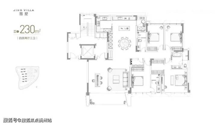 建面约230平 4房3卫