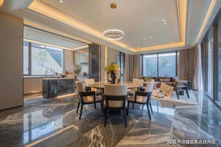 漫步于光影交织的幽静庭院,您将踏入一方充满诗意的天地。潺潺流水映照着婆娑树影,挺拔树姿为这片空间注入向上的生机,纵向延伸出无限的视觉张力。这座下沉庭院,不仅拉近了建筑与自然的情感共鸣,更使室内与景观紧密相连、和谐相融。每一扇窗户,都犹如框中的一幅生动山水画。