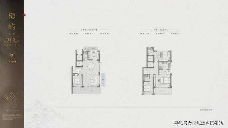中间套300㎡地上三层双主卧套房设计,每间卧室连通露台或庭院;L型景观面实现“移步异景”。边套340㎡顶层阳光房与私家电梯入户,主卧独占整层,躺瞰超山梅花盛放,地下室可拓展为私人艺术馆。