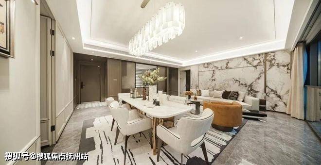 值得一提的是,约55平的宴会级无界方厅,采用LDKB一体化设计,将客餐厅、厨房、阳台全部打通,形成一个开放灵活的多功能聚厅。