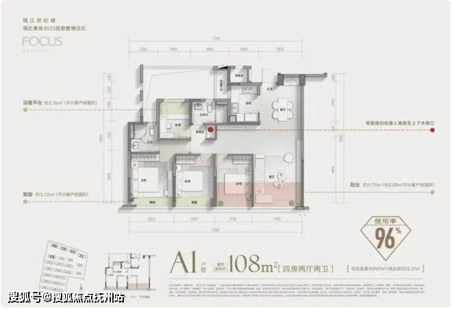 再来看建面约108㎡四房两厅两卫户型。