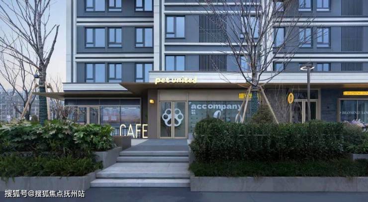 以宠物天地、便利店、烘培奶茶构成的休闲街区则涵盖日常生活所需。雨棚高度的错落,立面构成的“转折一下”,材质的变化以及个性十足的logo让每家店拥有面独一无二的极高辨识度与归属感。