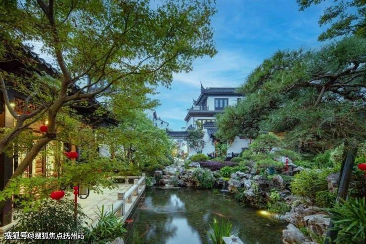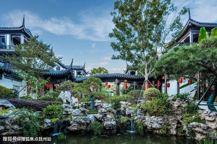 一园宋韵,境呈江南风雅。古越珺府特邀“戗王”顾水根、“掇山大师”袁荣福执笔操刀,“三进归园,一水南北”层层入境。园区内移步异景,戗角高翘,黛瓦覆盖,廊亭高敞,假山苍古,花窗疏影,亭桥廊道,院落围合等,将东方诗意融入日常,形成“园中藏园”的层次感,一幅诗意画卷由此徐徐展开。