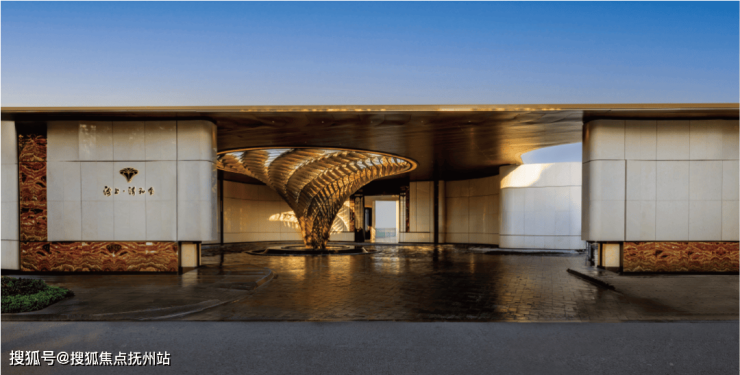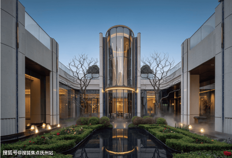 考究《周礼·考工记》古代规格定制“面阔九间”归家门庭,门庭外立面采用雅奢温润的建筑材料,辅以两侧具有仪式感的跳泉水景,共同构成了“贵雅清和”的城市界面。