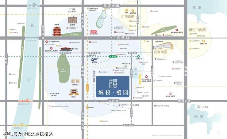 城投·禧园的落位,具体是在武昌区二环,雄楚大街与静安路交叉口西北角。