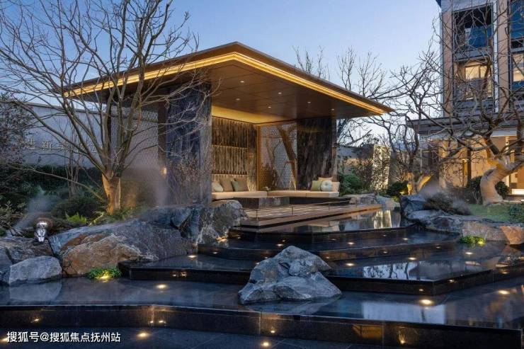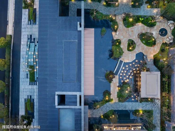 在前场,项目还用宝格丽绿奢石打造成一座山丘,再种上铁冬青,叠加潺潺流水,一幅江南意境向城市开放。