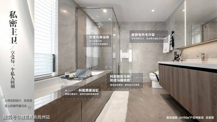 静隐奢华的卫浴感官体验,多重人性化设计,方寸之间邂逅优雅精致,轻松卸下内心疲惫。
