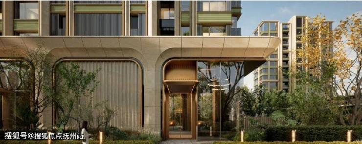 取意豫园中式园韵,打造约 99 米隐奢入口空间结合独立的车马院,风雨廊道与人车分流独立双入口,带来尊贵的归家体验。