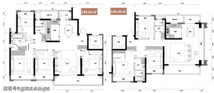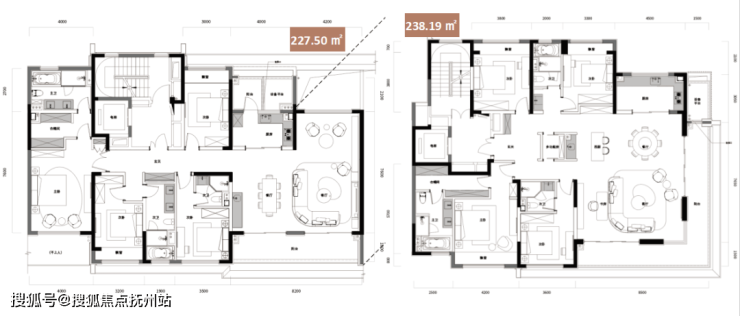 其余户型也各具特色,149.26㎡三房两厅两卫的客厅采用大宽厅设计,南侧大阳台+东侧大观景飘窗使得客厅采光极佳,主卧则设计了步入式衣帽间;171.12㎡四房两厅两卫和199.43㎡四房两厅三卫拥有更宽阔的开间,彰显业主尊贵气度;227.50㎡四房两厅三卫的南向面宽约20.8米,客厅约6.3米挑高、约8.2米开间,业主可享受别墅级生活尺度,同时还采用了中西双厨设计;238.19㎡四房两厅三卫为方正大平层,拥有约18.8米的南向开间,270°大转角风景阳台让业主享有全景视野,同样采用了中西双厨设计。