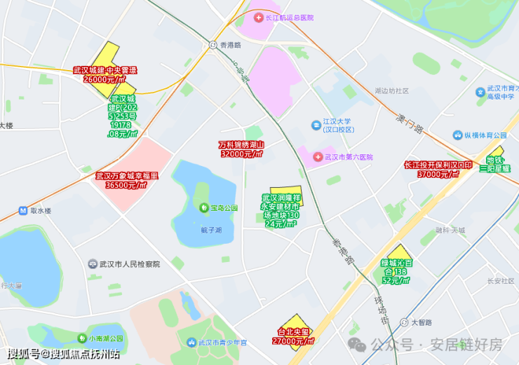 项目板块:项目位于江岸区香港路与澎湖路交汇处西侧,属于汉口内环台北路板块。台北路是老汉口的核心聚居区,承载着武汉百年商脉与人文底蕴,板块内路网成熟、配套齐全,地缘客群粘性强。