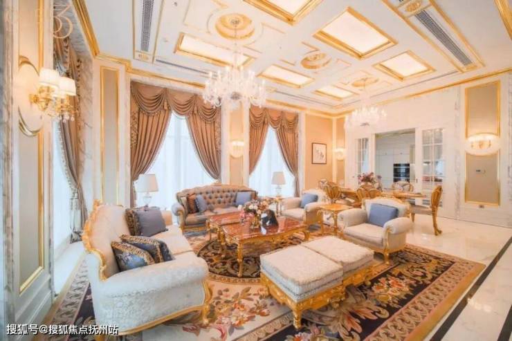 因为新古典主义源自法国宫廷,应用场景层高通常在5米左右,才能为水晶大吊灯、雕花柱头等提供足够的“炫耀空间”。