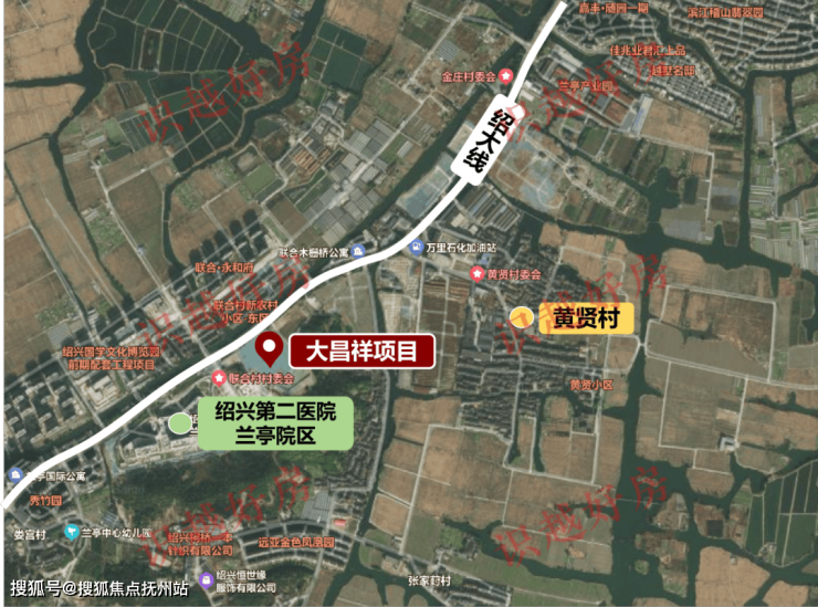 大昌祥·柯桥区LT-01-02-12地块项目,位于兰亭街道,绍大线以南,近邻绍兴二院兰亭院区。