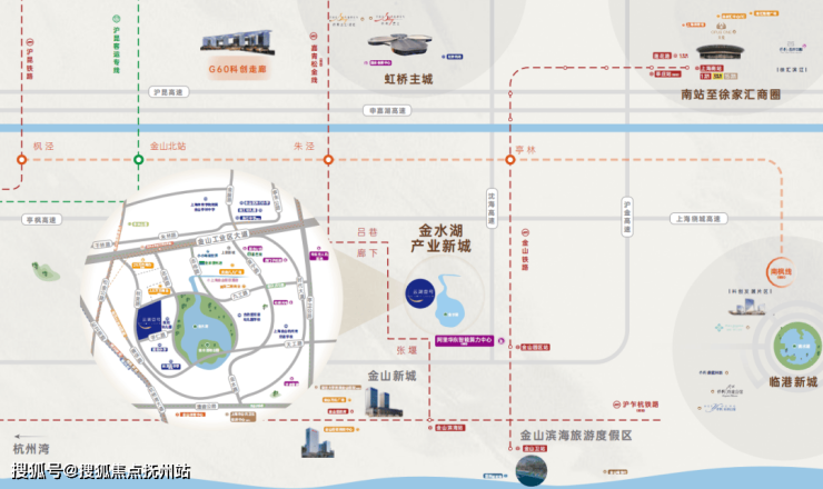 上海·金山根据《虹桥国际开放枢纽建设总体方案》,金山将全区域纳入“南向拓展带”,融入虹桥枢纽战略。以联动杭州湾,实践2035长三角一体化发展战略,树立上海西南重要门户。通过打造“上海湾区”城市品牌,成为产城融合样板城市、滨海花园城市、门户节点城市。