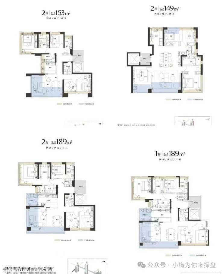 其中,1号楼和2号楼,2-15F都是153㎡户型;16F及以上,西边户是188㎡户型,东边户是153㎡户型。