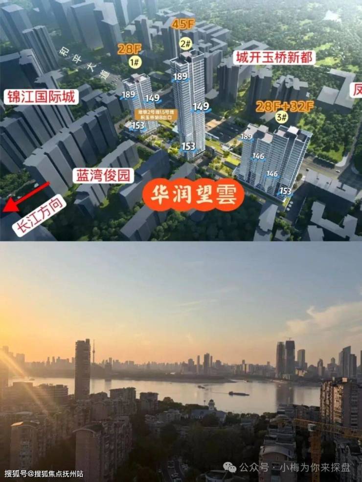 这个项目隔壁的蓝湾俊园是5-18F的总层高。因此,华润望雲的高区应该是可以看江的。