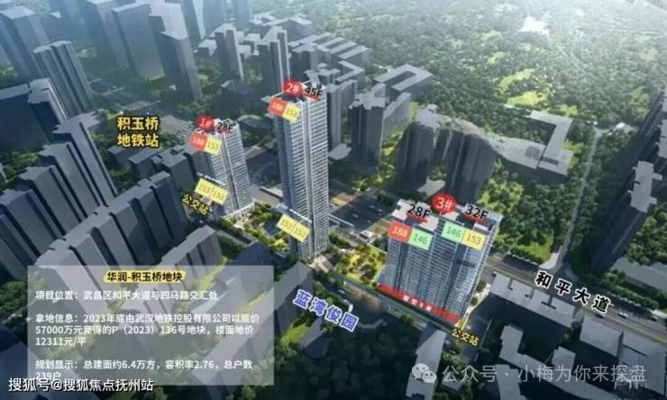 华润置地.望雲——开搞地块之前一直传的沸沸扬扬,中途一直没有新消息,这次的确报规了,比较确定了确实华润操盘而且今年内就会开盘。该项目位置在2号线和5号线积玉桥站正地铁口B出口和平大道和四马路交汇处。该项目是在2023年12月26日武汉地铁集团12311元/平拿下武昌积玉桥核心和平大道与四马路交汇地块,由于种种原因搁置至今。该项目是华润置地与武汉地铁公司合作项目,华润占股51%占据决定权的,所以品质还是可以把好关的。