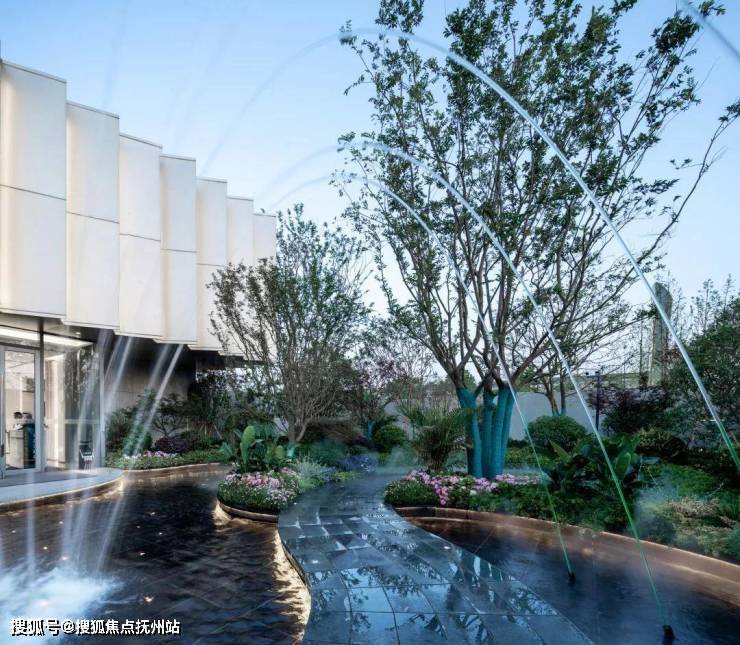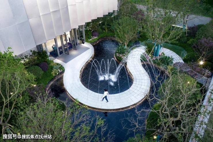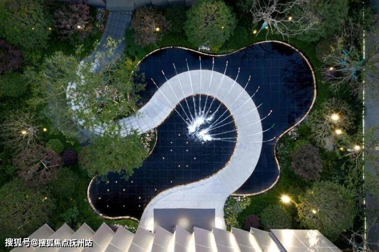 步入这方静谧流动的庭院,能感受到夏溪潺潺,百折迂回的“探幽”乐趣,空间中抓取夏溪河、钱资湖的光影形态,幽潭意象,形成联动的意境空间,布局运用在景观打造中,以曲线美学艺术诠释场地文化精神,灵动水景经由石阶周折引入,曲径纵深,漫步此间,观境由心,归逸溪居,呈现一场“溪绕礼遇,一浸碧空,自然天成”的流动盛宴。