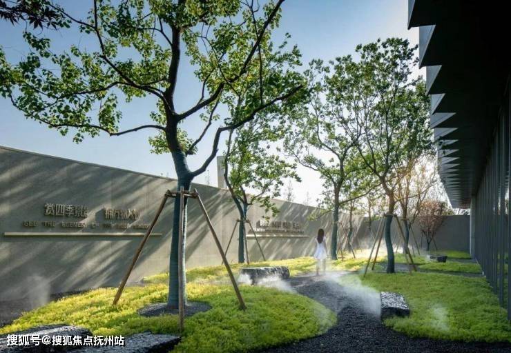 从售楼处室内向外望去,是一片树形婆娑的乌桕林,蜿蜒曲折的自然石径舒展开精神隧道的触角,光与影在烟雾缭绕间诉说冥想的悠然,诗意如画成荫,洒下一地斑驳。