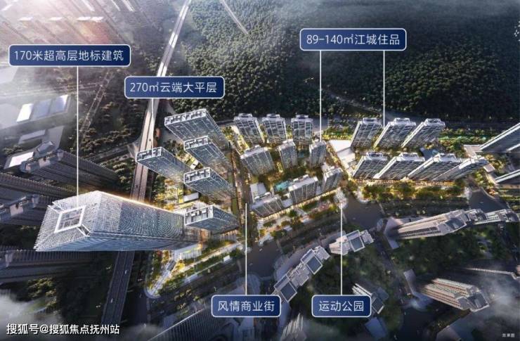 项目包含约170米超高层地标建筑、建面约270㎡商业大平层、建面约89-140㎡住宅以及代建生鲜农贸市场等。
