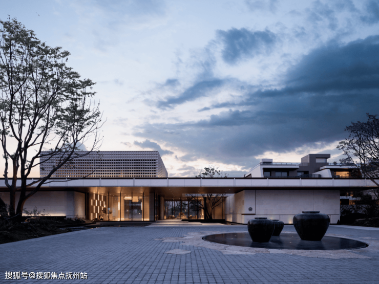 外立面选取沉香米黄石材与安哥拉黑棕石材色彩搭配,融合咖色铝板与玻璃幕墙的现代笔触,仿佛从湖畔土地中自然生长而出,更让建筑成为自然肌理的延伸。