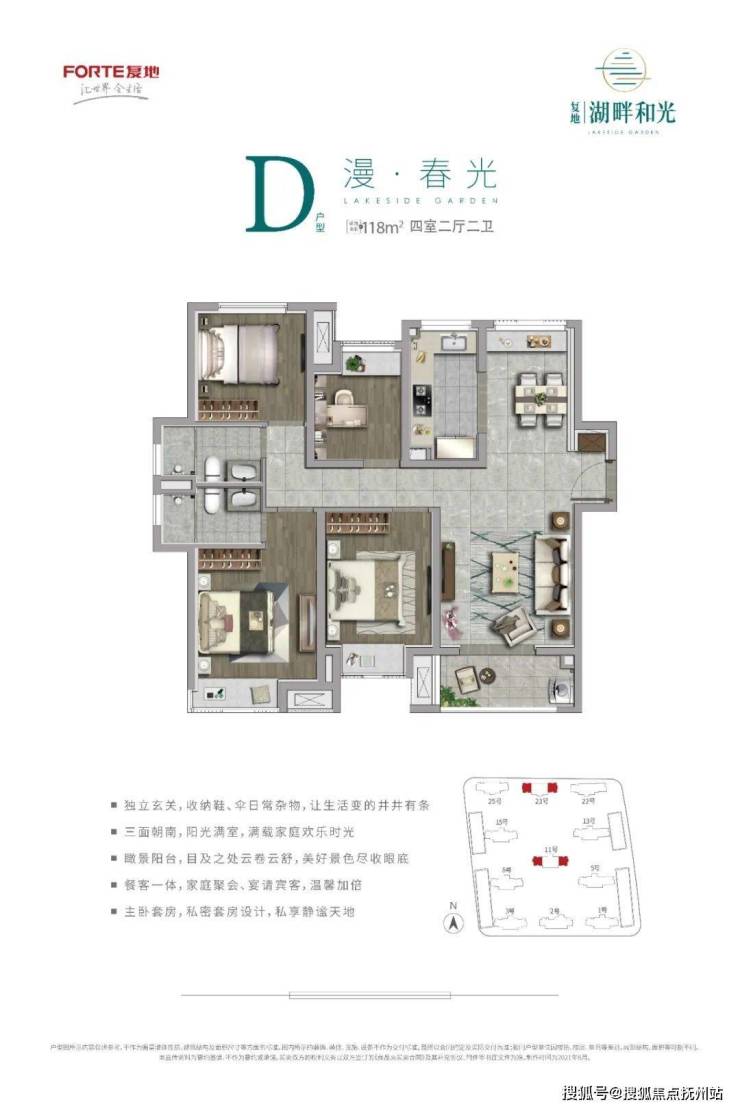 复地·湖畔和光主力产品约75-136㎡2-4房,精装交付。