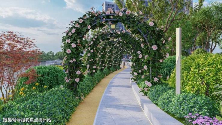 滨水而居的社区景观,融入艺术廊架、中央花园、健康跑道、日光草坪、星球主题全龄段儿童乐园等功能场地,为居者的日常增添乐趣。