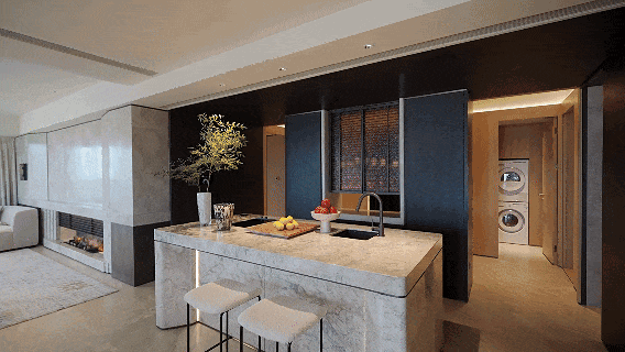 “现在对好房子的定义,讲究的是一种综合能力的体现。我们现在所处的这套样板房是建面约240㎡四房户型。这个面积段被作为精华户型,在市场上其供应量相对稀少,面向的也是最懂产品、最看重生活品质的行家客户。”