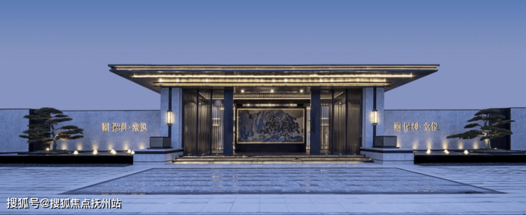 保利·堂悦,把传统尊崇礼制和中轴对称的仪式感建筑意向用在这里,融入酒店式迎宾礼秩,颇有深墙大院之感。设计遵循当代建筑设计风格的基调,前门入口线条简约但硬朗。简单质朴的配色,将恢弘大气的特质反衬得淋漓尽致。