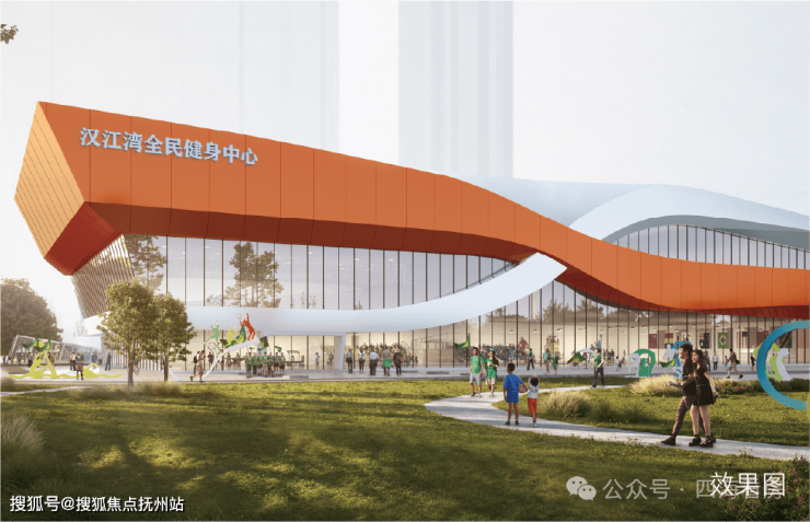 直线距离约100M即达约1.1万㎡汉江湾全民健身中心(预计年底投入使用):涵盖篮球、羽毛球、游泳等体育场馆。