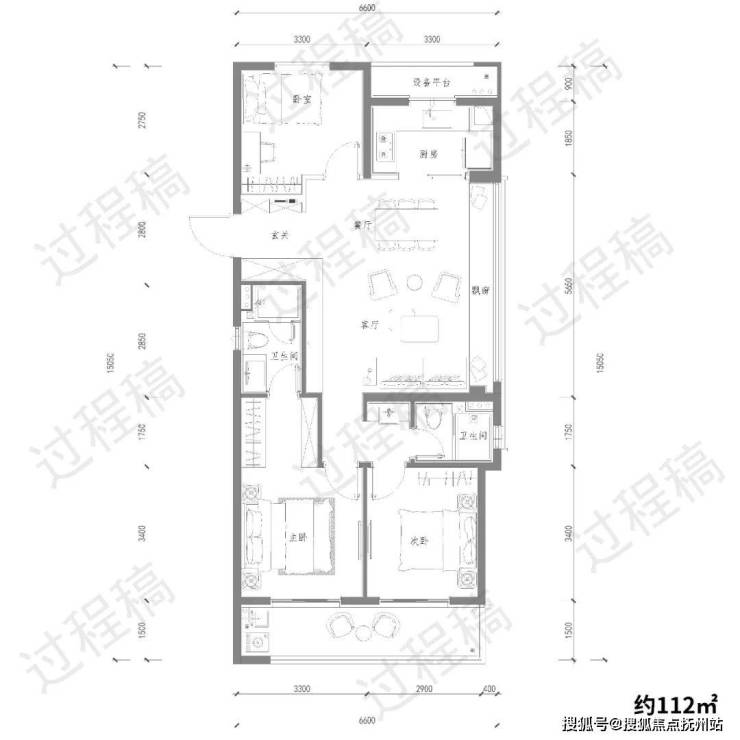 B 三房两厅两卫 约112㎡