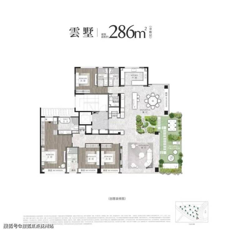 户型内部格局采用了“十字入户玄关”和“小合院式餐厨空间”等创新设计,实现了动线的巧妙分流与空间的聚合效应。