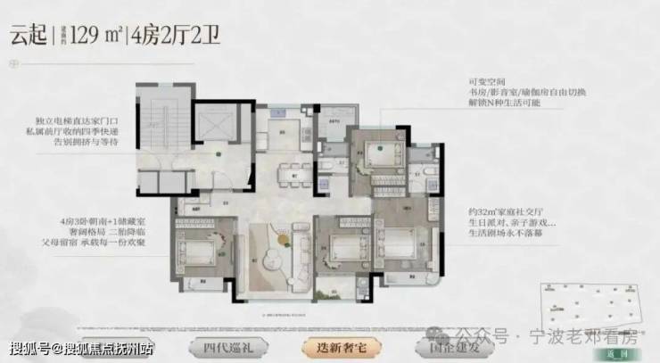 •全龄架空层:升级打造沉浸式架空层,规划云舞灵境、童梦云屿、云憩客厅等,延伸家以外的第二空间,满足亲子、社交、娱乐、运动灯功能需求。