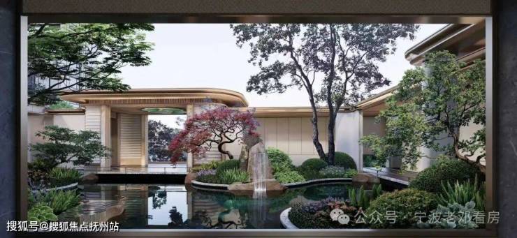 约600㎡山海浮岛下沉庭院,源于宋代“三叠泉”灵感的近七米高三叠瀑布,与亭台楼阁、水榭奢石搭配打造静谧、清幽的浮屿谧境。