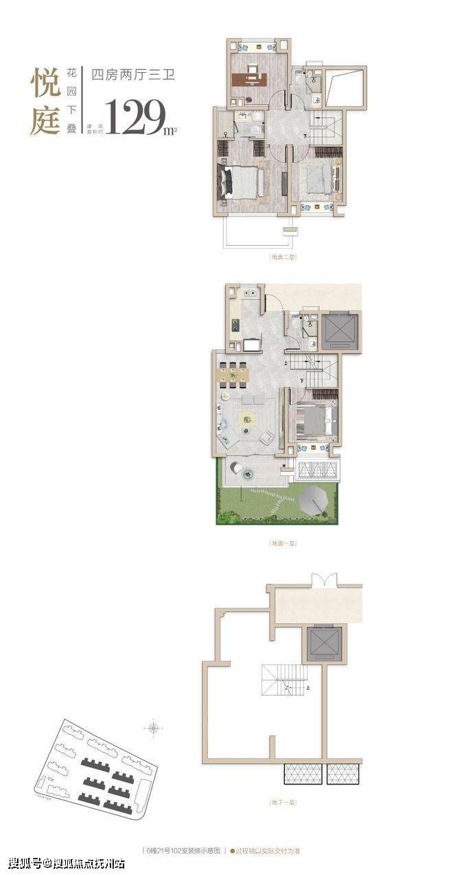 建面约129m²4房2厅3卫(下叠)